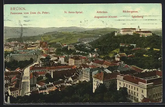 AK Brünn, Panorama vom Dom, mit Spielberg