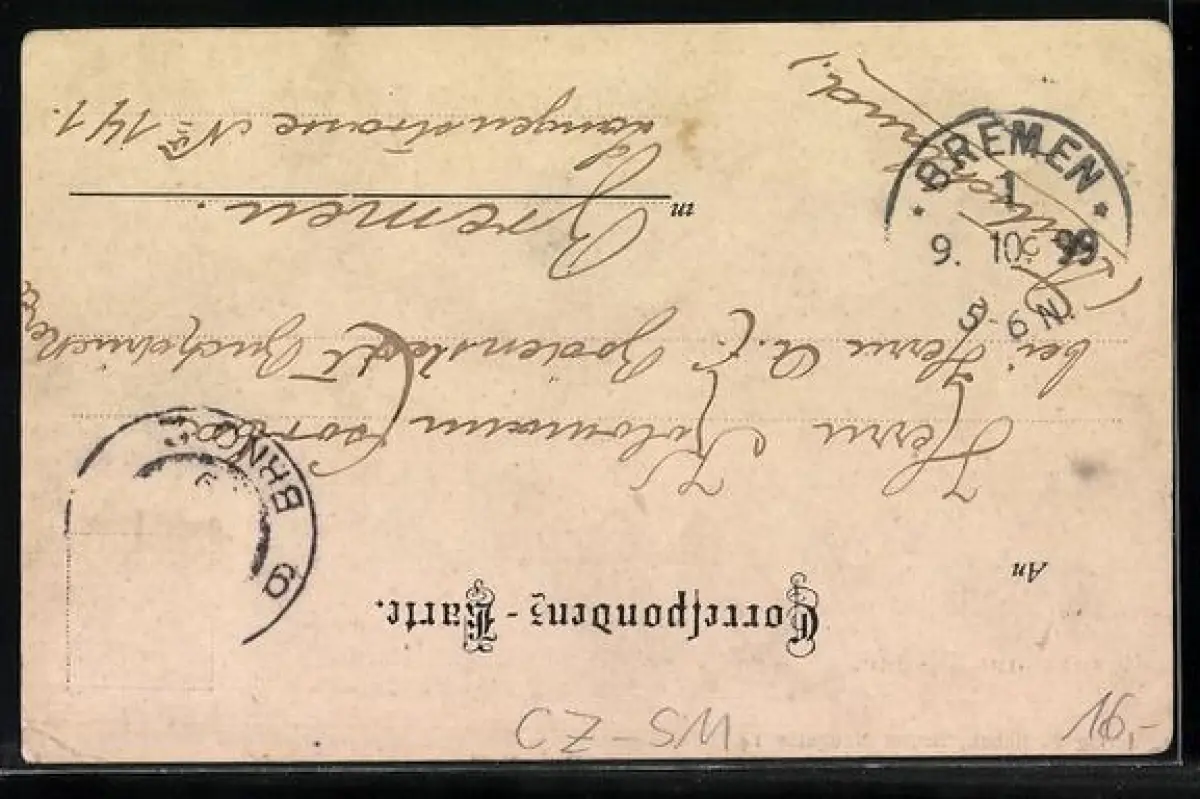 alte Ansichtskarte, gelaufen 1899, Briefmarke entfernt, Eckknick re. unten, guter Zustand