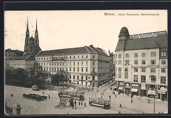 AK Brünn, Strassenbahn am Bahnhofplatz