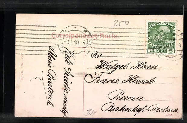 gelaufen 1910, Stempelspur, sonst guter Zustand