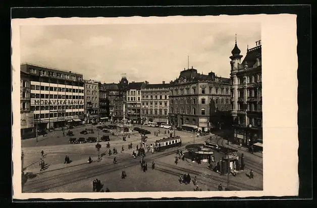 AK Brünn, Victoriaplatz mit Strassenbahn aus der Vogelschau