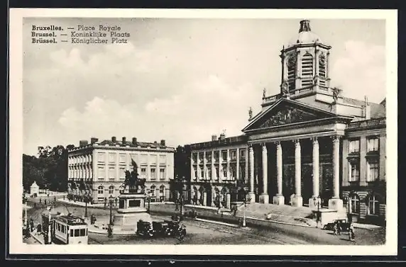 AK Brüssel, Strassenbahn auf dem Königlichen Platz