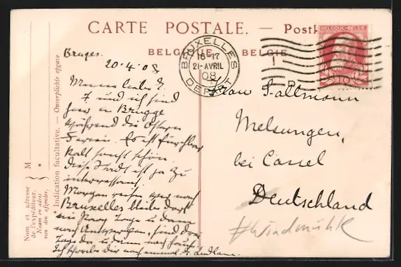 alte Ansichtskarte, gelaufen 1908, guter Zustand
