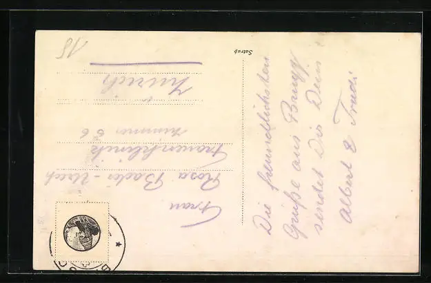 alte Ansichtskarte, gelaufen, Briefmarke entfernt, guter Zustand