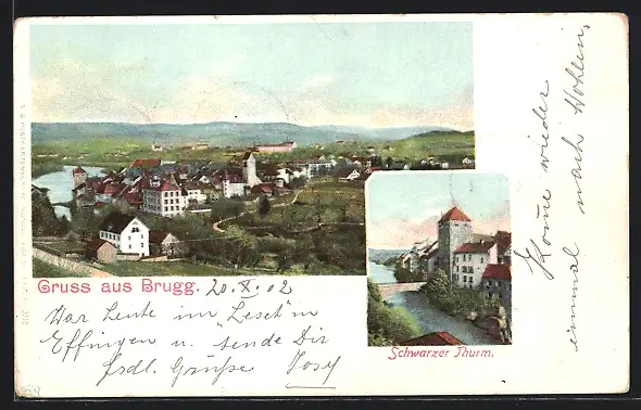 AK Brugg, Schwarzer Thurm, Gesamtansicht aus der Vogelschau