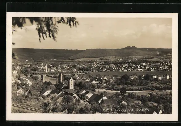 AK Brugg, Totalansicht mit Brücke und Blick zum Umiken