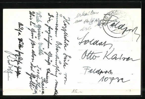 alte Ansichtskarte, gelaufen 1942 als Feldpost, guter Zustand