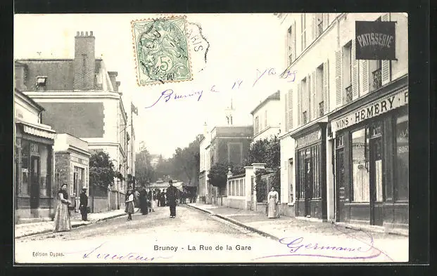 AK Brunoy, La Rue de la Gare, Strassenpartie