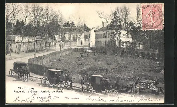 AK Brunoy, Place de la Gare, Arrivée de Paris