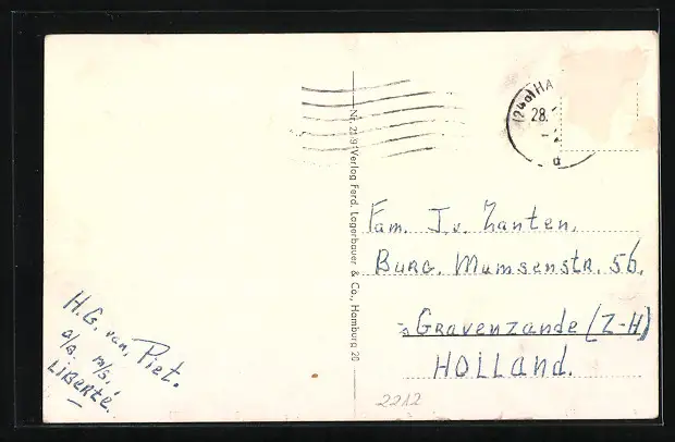 alte Ansichtskarte, gelaufen, Briefmarke entfernt, rückseitig Oberflächenschaden, Bugspur mittig oben, guter Zustand