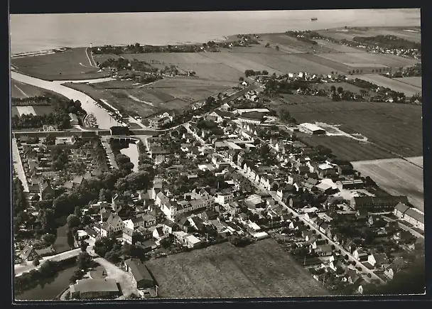 AK Brunsbüttelkoog, Fliegeraufnahme vom Ort mit Wasserpartie