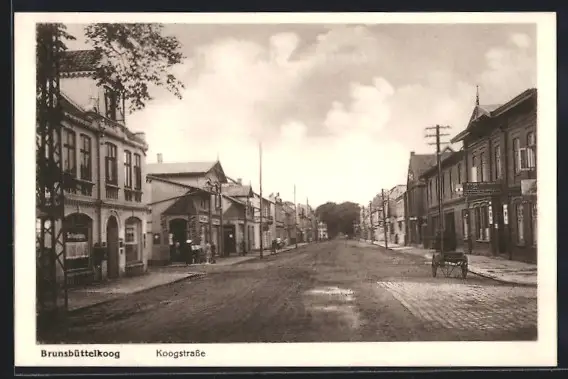 AK Brunsbüttelkoog, Koogstrasse mit Hotel zur Kanalmündung