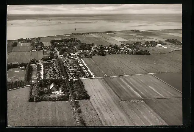 AK Brunsbüttelkoog, Ortsansicht mit Seeblick, Fliegeraufnahme