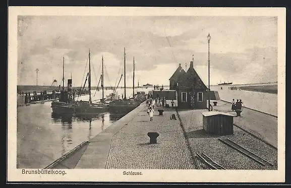AK Brunsbüttelkoog, Schleuse mit Booten