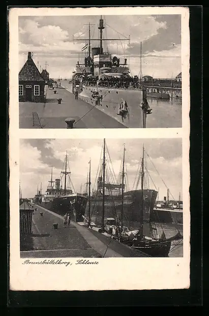 AK Brunsbüttelkoog, Schleuse mit Dampfern