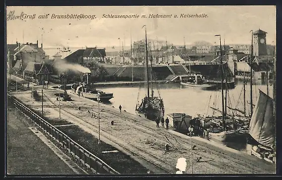 AK Brunsbüttelkoog, Schleusenpartie mit Hafenamt & Kaiserhalle