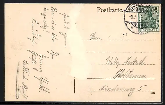 alte Ansichtskarte, gelaufen 1914, rückseitig Oberflächenschaden, guter Zustand