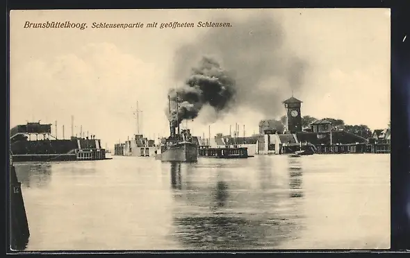 AK Brunsbüttelkoog, Schleusenpartie mit geöffneten Schleusen