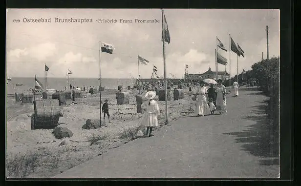 AK Brunshaupten, Friedrich-Franz-Promenade mit Besuchern