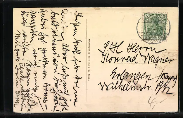 alte Ansichtskarte, gelaufen, rückseitig Klebe- und Papierreste, guter Zustand