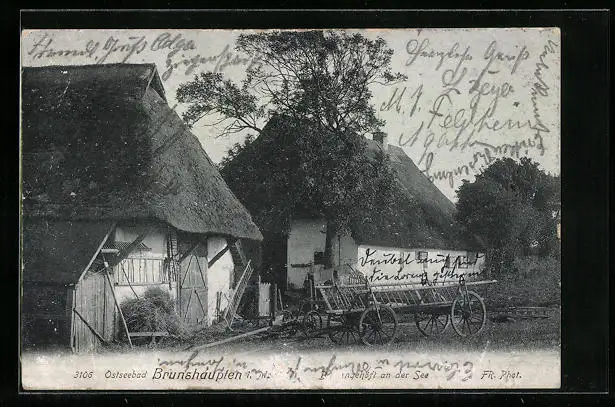 AK Brunshaupten i. M., Bauerngehöft an der See