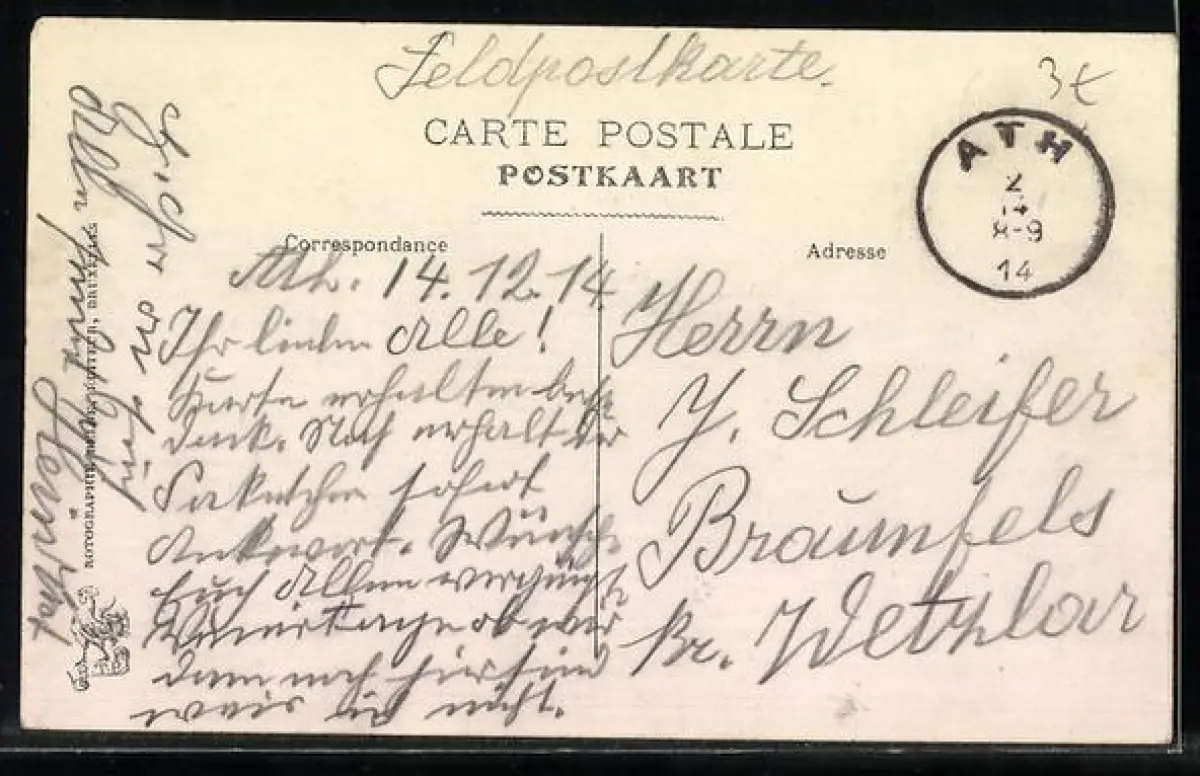 alte Ansichtskarte, gelaufen 1914, Stempelspur, minim. Eckschaden oben re., guter Zustand