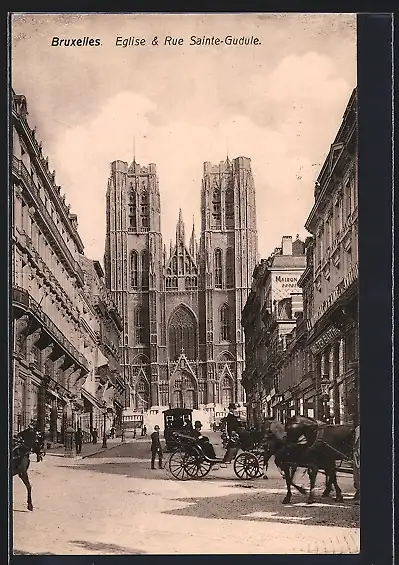 AK Bruxelles, Eglise & Rue Sainte-Gudule