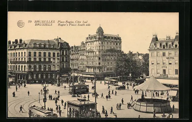 AK Bruxelles, Place Rogier, Côté Sud, Strassenbahn