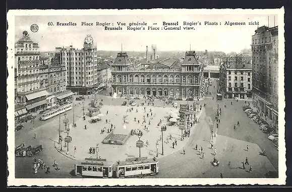 AK Bruxelles, Place Rogier, Vue Générale, Strassenbahn