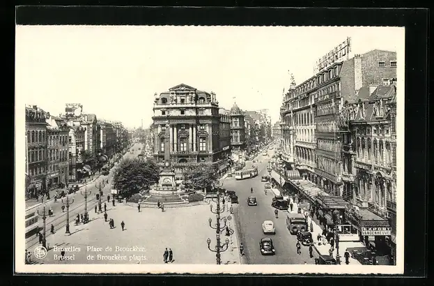 AK Bruxelles, Place de Brouckere, Strassenbahn