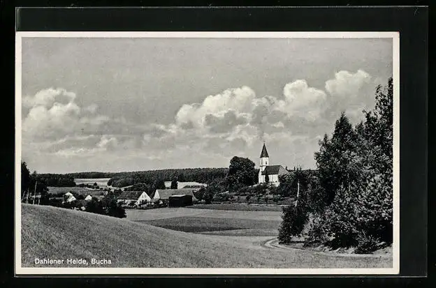 AK Bucha, Dahlener Heide, Ortspartie mit Kirche