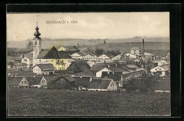 AK Buchbach /Obb., Teilansicht mit Kirche aus der Vogelschau