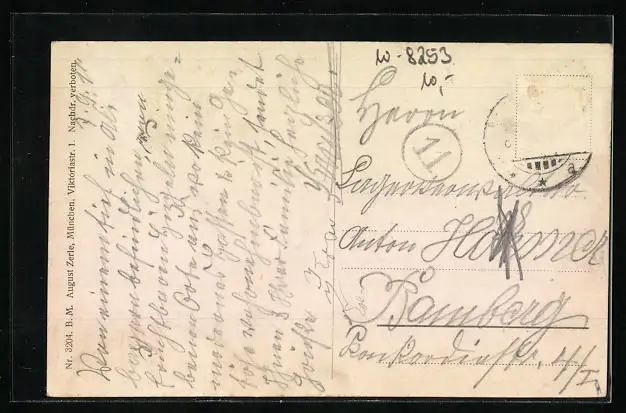 alte Ansichtskarte, gelaufen, Briefmarke entfernt, guter Zustand