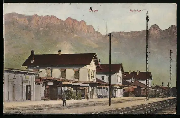 AK Buchs, Bahnhof, Wartende auf dem Bahnsteig