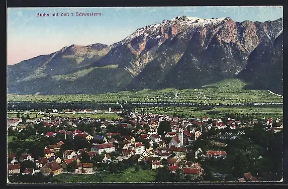 AK Buchs, Blick über den Ort zu den 3 Schwestern