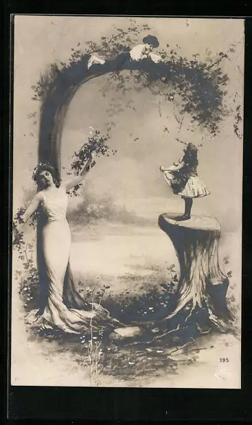 AK Buchstabe C mit Frau und Kinderpaar an einem Flussufer