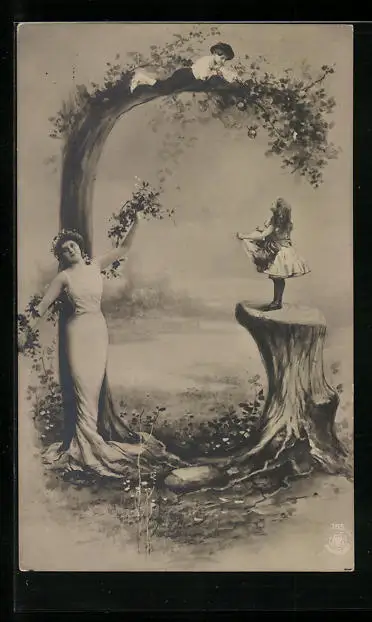 AK Buchstabe G mit Kindern und Frau