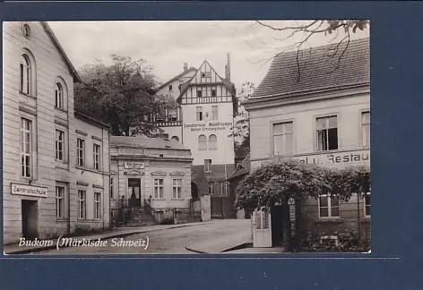 AK Buckow ( Märkische Schweiz) , Sanatorium Waldfrieden und links die Zentralschule, nicht gelaufen von ca. 1960, Rückseite Beschriftet.