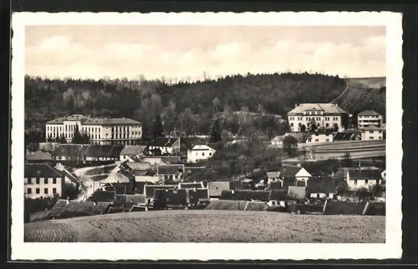 AK Bucovice, Teilansicht des Ortes mit Gymnasium