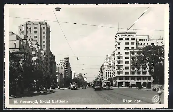 AK Bucuresti, B-dul Bratianu, Strassenbahn