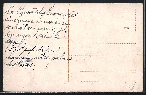 Personenbezogene Daten auf der Rückseite der Karte wurden durch blauen Textmarker unkenntlich gemacht. Die blauen Stellen sind auf die Vorderseite durchgeweicht und wirken sich negativ auf das Postkartenfoto aus