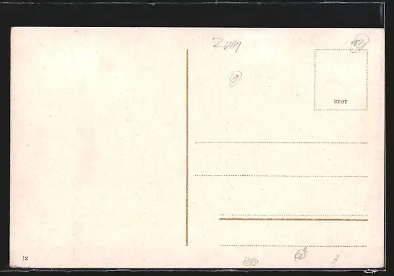 Personenbezogene Daten auf der Rückseite der Karte wurden durch blauen Textmarker unkenntlich gemacht. Die blauen Stellen sind auf die Vorderseite durchgeweicht und wirken sich negativ auf das Postkartenfoto aus