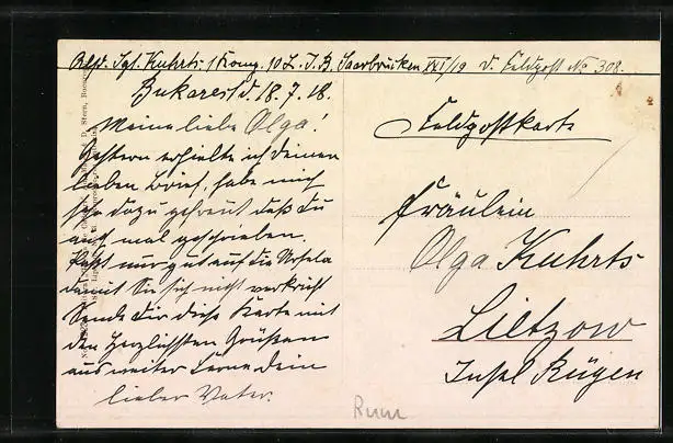 alte Ansichtskarte, gelaufen 1918 als Feldpost, guter Zustand