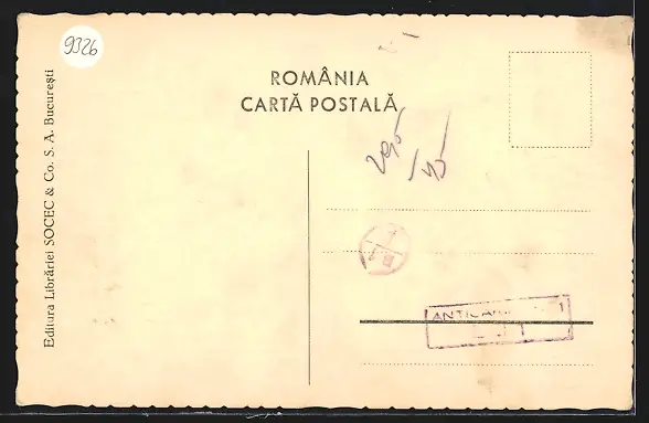 Personenbezogene Daten auf der Rückseite der Karte wurden durch blauen Textmarker unkenntlich gemacht. Die blauen Stellen sind auf die Vorderseite durchgeweicht und wirken sich negativ auf das Postkartenfoto aus