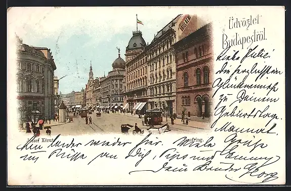 AK Budapest, Budapest, Belebte Szene am Josefring