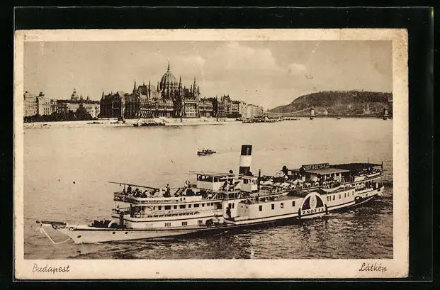 AK Budapest, Donaudampfer Zsofia, Flusspartie