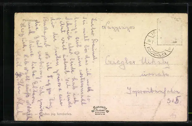 Personenbezogene Daten auf der Rückseite der Karte wurden durch blauen Textmarker unkenntlich gemacht. Die blauen Stellen sind auf die Vorderseite durchgeweicht und wirken sich negativ auf das Postkartenfoto aus