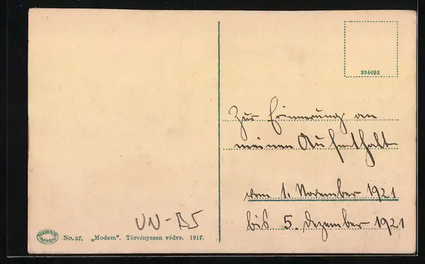 ungelaufen, Rückseite beschrieben 1921, guter Zustand