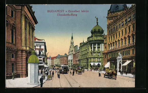 AK Budapest, Elisabeth-Ring mit Strassenbahn