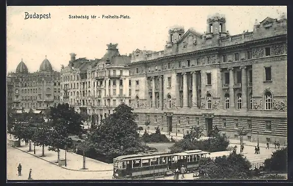 AK Budapest, Freiheits-Platz mit Strassenbahn